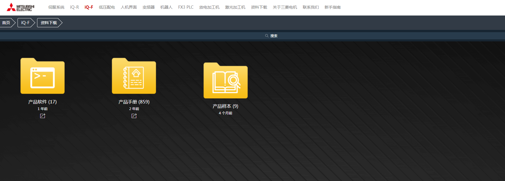 例如我要找IQ-F的PLC的資料手冊。直接點擊進去。(可以左右滑動,需要找什么資料就進去)