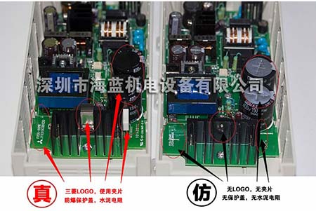 3、內部,真品每塊電路板上都有三菱Logo。仿品電路板上沒有三菱Logo。