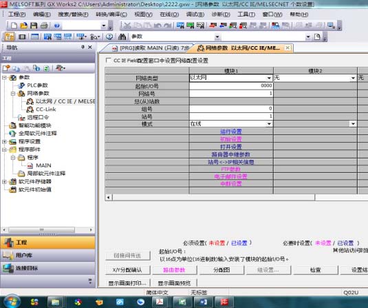 在三菱PLC編程軟件GX Works2中新建工程,選擇Q02UCPU,在PLC參數中的網絡參數的以太網等等,選擇模塊1,具體設置如下圖:
