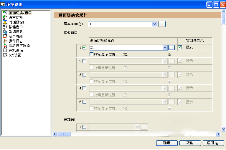 點擊軟件上的“公共設(shè)置”——“GOT環(huán)境設(shè)置”——“畫面切換窗口”如圖所示: