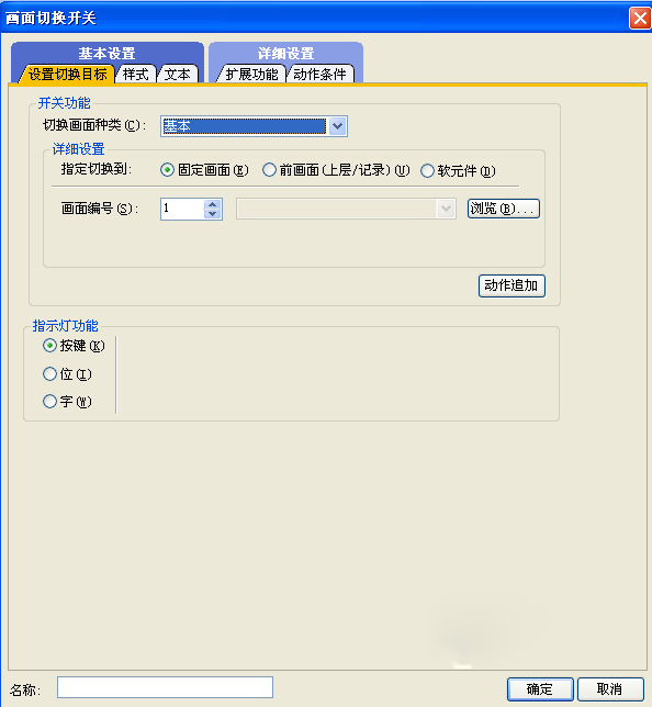 首先我們需要組態(tài)切換畫面的類型,是切換為基本畫面還是切換為窗口畫面,然后在詳細畫面設(shè)置的時候指定需要切換到的畫面,可以直接切換為固定畫面,在畫面編號里面設(shè)定需要切換到的畫面編號,或者也可以點擊旁邊的瀏覽按鈕選擇里面需要切換到的畫面。