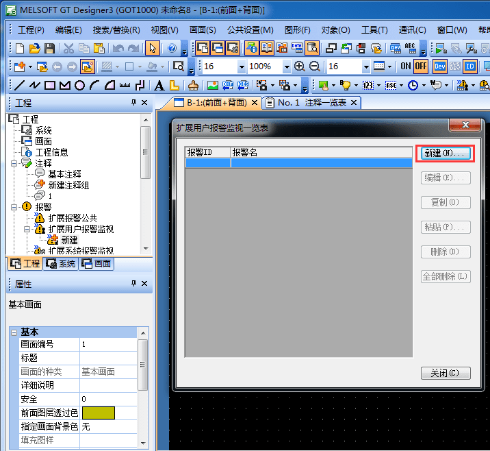 2.3.2 新建一個擴展用戶報警監視表,單擊[新建]